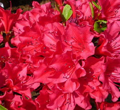 | ツツジの中で、一番大きな花を咲かせます。赤紫色の大輪の花を咲かせるところから「オオムラサキ」となりました。通常「ツツジ」と言えばこの種類を指すほどの代表種です。 | 別名として、キリシマ、ホンキリシマ、サタツツジと呼ばれることも。鉢植、切花によく使われます。他にも刈り込んで樹形を仕立てたり、生垣に用いたりと用途は多様です。 | 4月〜5月にかけて花を咲かせる落葉低木で、花色は白、ピンク、赤、紫と多彩。別名はリュウキュウツツジ、シロヨドガワツツジ。左のオオムラサキツツジも、この一種。 |