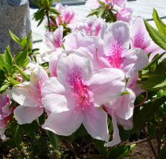 | 小ぶりの花を咲かせるツツジで、多くの園芸品種があります。江戸時代中期に薩摩から各地に広まったそうです。鮮やかな朱色のものが多く、満開になった時は見事です。 | 花も葉も大きく華やかなツツジで、ケラマツツジとリュウキュウツツジの交配、あるいはケラマツツジとキリシマツツジの雑種であるともいわれています。 | 古くから主に長崎県平戸市で栽培されてきたことからヒラドツツジとよばれ、交配が重ねられ数多くの園芸品種があります。白や淡いピンク色など、きれいな花を咲かせます。 |