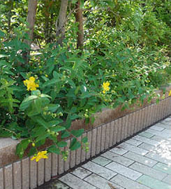 | オトギリソウ科ヒペリカム属の常緑低木。5〜6月頃に黄色で直径7〜8cmある大形の花を咲かせるので華やかな印象を与えます。つぼみがたくさんついてるのでこれからたくさん咲きそうです。 | ||||