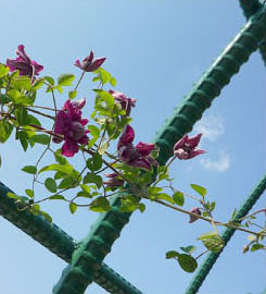 | つる性宿根草の植物で、日本にはテッセンと呼ばれる在来種があります。「クレマチス」は、テッセンを含め、様々な品種に対する総称として用いられているようです。名前の由来は、ギリシャ語のKlema(つる、まきヒゲの意味)が変化してつけられました。 | ||||