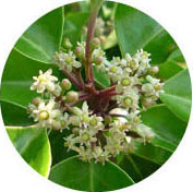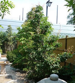 | 比較的温暖な地域に分布する常緑性の高木で、雌雄異株の小さな花を沢山咲かせます。モチノキの仲間で若い枝や葉の軸が紫色を帯びるのでクロガネ(黒鉄)モチの名前がつきました。秋になると真っ赤に熟した実を付けます。 | ||||