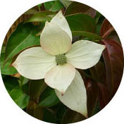 | 常緑ヤマボウシの花びらが開きました。5月の頃ではまだ緑色でしたが可愛らしい白い花を咲かせています。小振りの花はバックナンバー「2009年5月25日撮影」を、ご覧ください。 | ||||