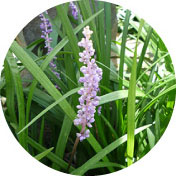 | ユリ科ヤブラン属の常緑多年草で、紫色の小さな花を穂状に咲かせます。名の由来は藪(ヤブ)のようなところに生え、葉がランの葉に似ていることから付けられました。葉に沿ってクリーム色の縁取りの入る「フイリヤブラン」などの品種もあります。開花時期は長く、7月末頃から咲き始め、10月頃まで楽しめます。晩秋には黒い実を付けます。 | ||||