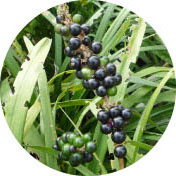 | 初夏に可愛らしい花を咲かせていたヤブランが実を付けました。樹木の陰のようなあまり他の植物が生えない場所でもよく育ちます。花はバックナンバー「2009年7月22日撮影」をご覧ください。 | ||||