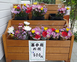 お参りに必要な墓参用品を各種取り揃えております。手ぶらでも安心してご来苑頂けます。
